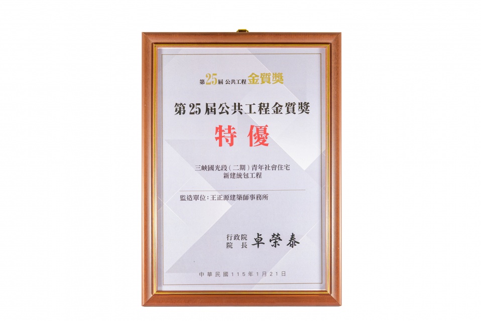 第25屆公共工程金質獎 專管單位 三峽國光段(二期)社會住宅 特優