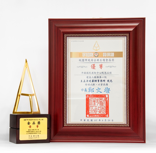 2024國家卓越建設獎-新北市板橋第二國民運動中心新建統包工程-最佳規劃設計類-公共建設類-獎狀及獎盃