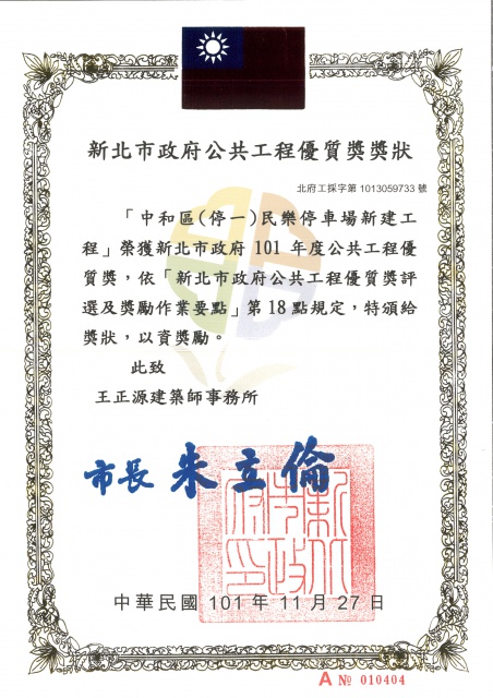 新北市政府工務局獎狀