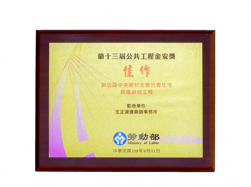 108年度新北市政府公共工程優質獎-新店中央新村北側社宅暨三峽國光段青年社會住宅新建統包工程