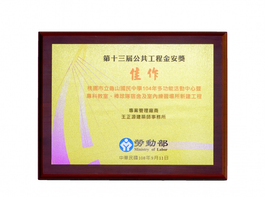 獲頒桃園市政府公共工程金品獎