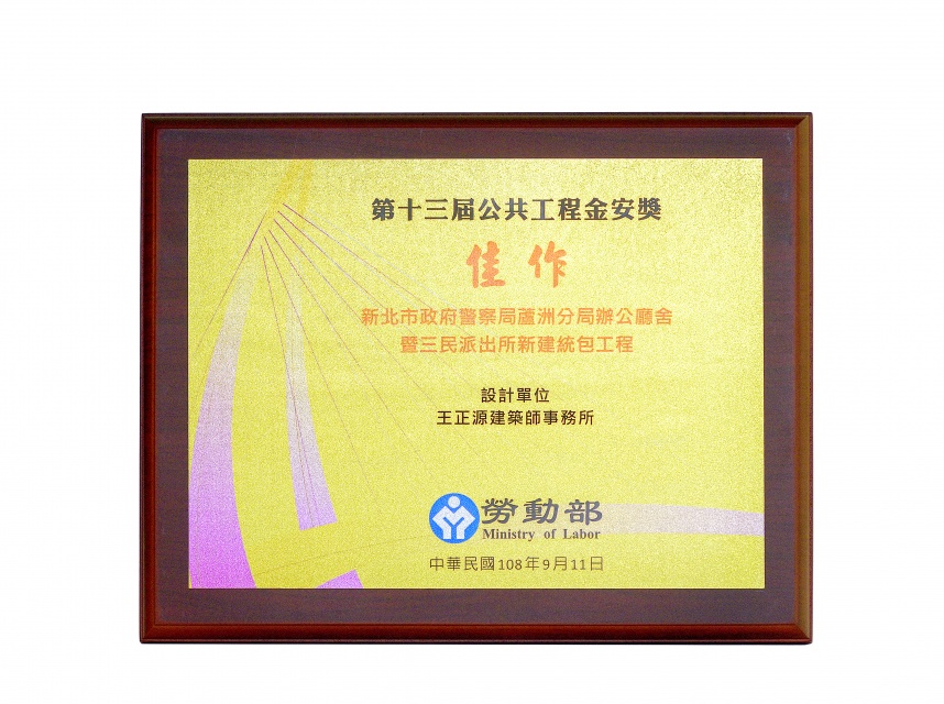 第20屆公共工程金質獎-新北市政府警察局蘆洲分局辦公廳設暨三民派出所新建統包工程(設計)、特別貢獻獎-(監造)暨(專案管理)