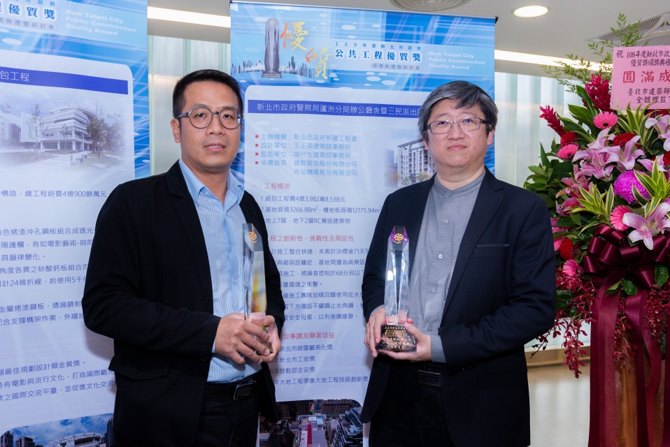 第20屆公共工程金質獎-新北市政府警察局蘆洲分局辦公廳設暨三民派出所新建統包工程(設計)、特別貢獻獎-(監造)暨(專案管理)
