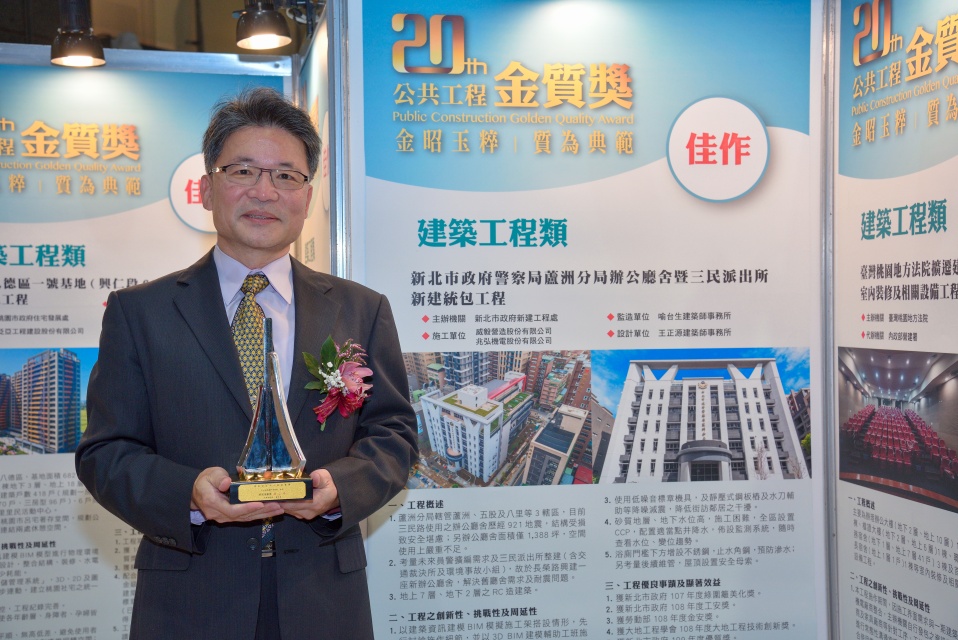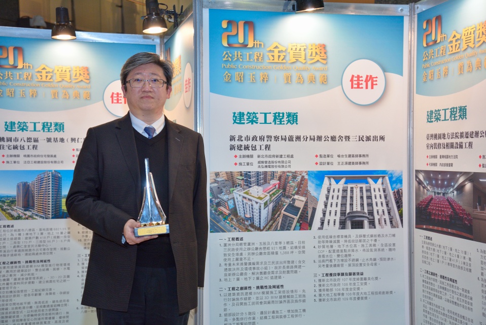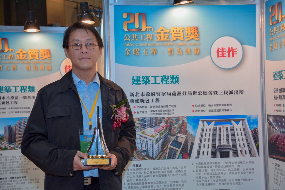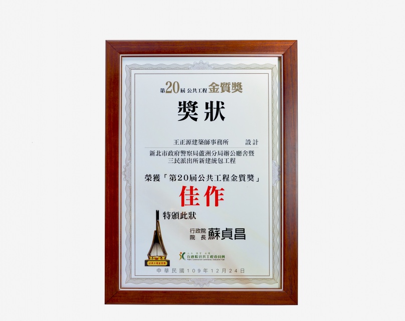 第20屆公共工程金質獎-新北市政府警察局蘆洲分局辦公廳設暨三民派出所新建統包工程(設計)、特別貢獻獎-(監造)暨(專案管理)