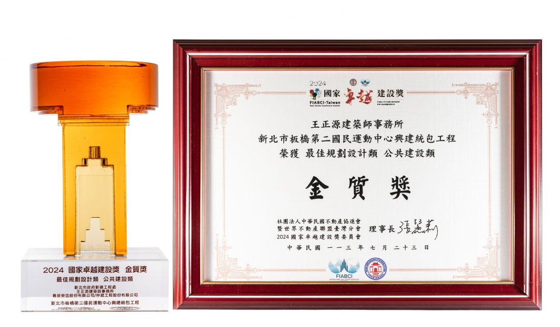 2024國家卓越建設獎-新北市板橋第二國民運動中心新建統包工程-最佳規劃設計類-公共建設類-獎狀及獎盃