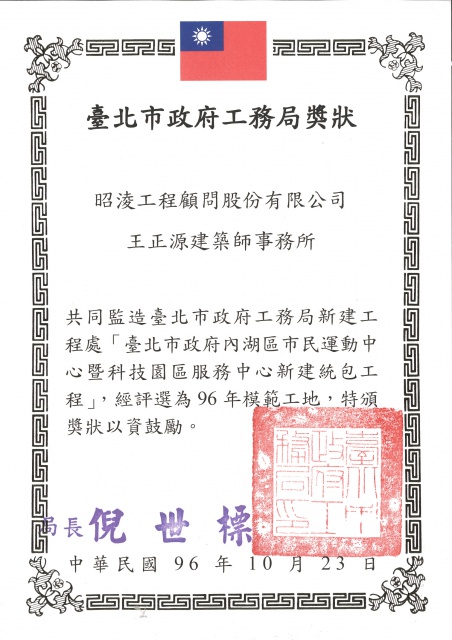獲頒台北市政府公共工程卓越獎